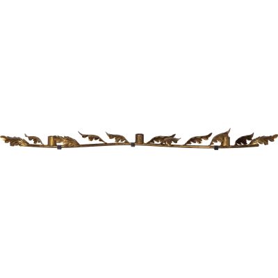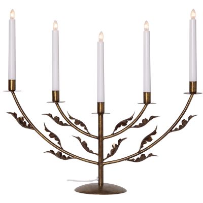 Kerzen-Typ: ohne Kerzen (kann nach Wunsch ergänzt werden) Brennstellen: 3 möglich Material: Metall Leuchter-Farbe: messing antik Höhe: 4cm Breite: 80cm Steckerzuleitung (m. Schalter): keine Stromversorgung: keine; (LED-)Kerzen sind nicht im Lieferumfang enthalten