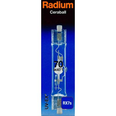 Produktdetails:Radium Halogen-Metalldampflampe HRI-TS mit Quarzbrenner für geschlossene Leuchten, UV-Schutz und RX7s-Sockel - Made in Germany